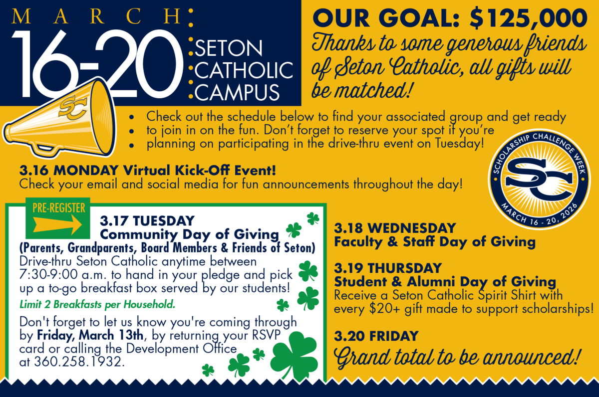 Please join us for Scholarship Challenge Week at Seton Catholic!